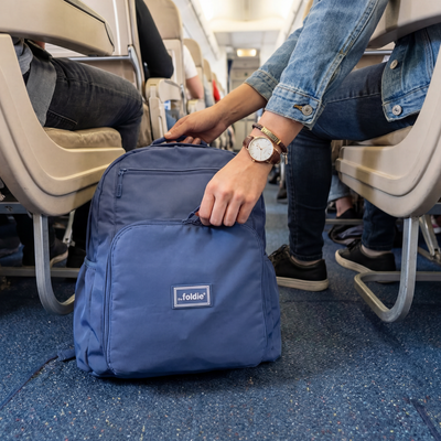 Yes. The Foldie® Backpack is designed to fit within most airline cabin item size limits when packed normally, so you can keep it under the seat and travel without needing overhead locker space.