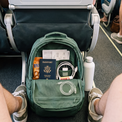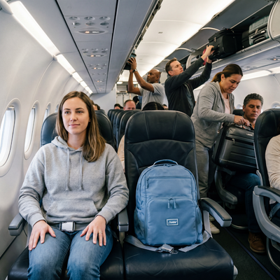 Designed to fit under most airline seats when packed within cabin item size limits.